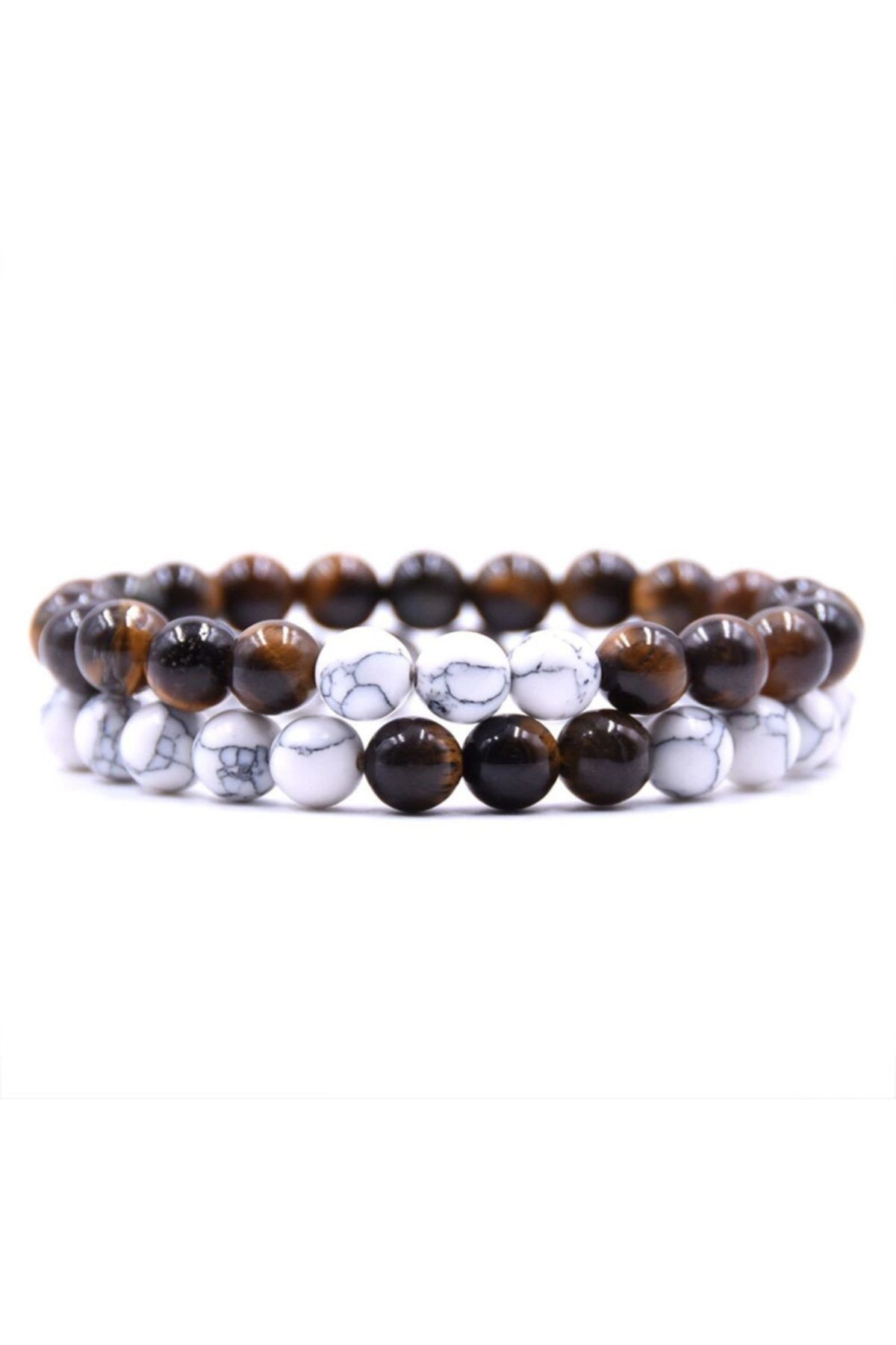 Doğal taş kullanımı, her bir bilekliğin benzersiz ve otantik bir görünüm kazanmasını sağlar; Kaplagözü ve beyaz havlit taşların uyumlu kombinasyonu, zarif ve şık bir stil sunar; İki bileklik seti, farklı renk ve desenlerle kişisel tarzınıza uyum sağlayacak şekilde tasarlanmıştır; Doğal taşların estetik dokusu, bilekliklerinize sofistike bir hava katar;