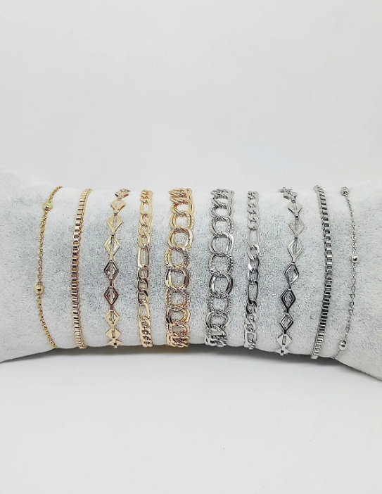 10 lu set zincir bilekliktir, materyali demirdir, uzatma zinciri bulunmaktadır, resimde gözüken 10 adet zincir bileklik gönderilir.